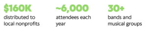 Sponsors receive cost effective advertising in the lead up to Porchfest, goodwill in the community, boost their community profile (more than 4,000 attendees in 2023), and support local youth non-profits.